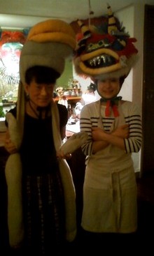 カウンターに佇むぷっぺ人形は、かぶれるようになってます。