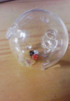ガラスのブタの中にサイコロが3つ入っています。